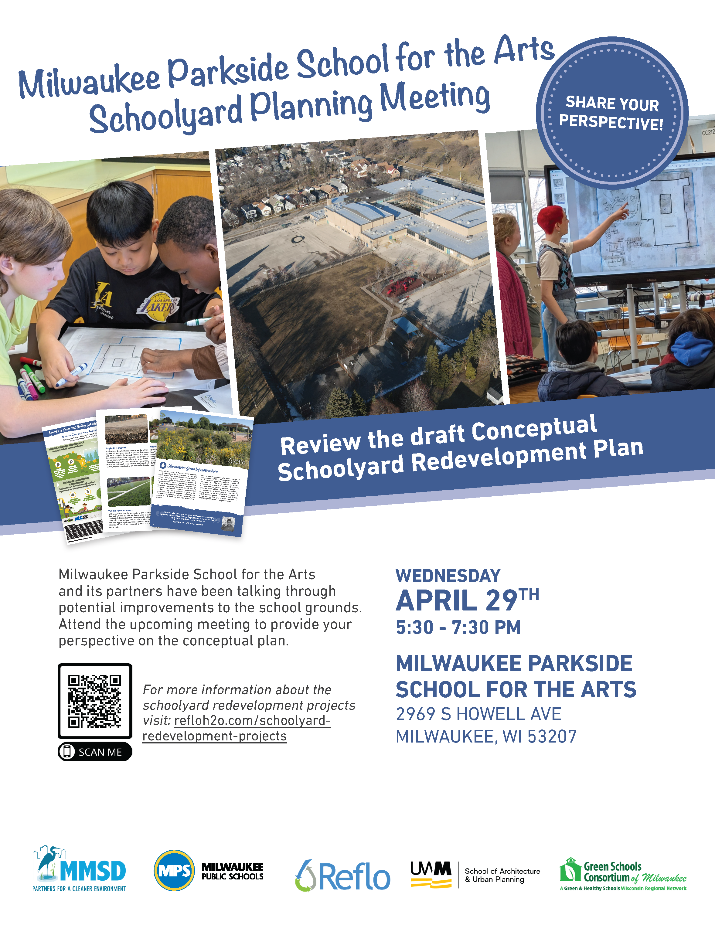 Milwaukee Parkside School for the Arts, located in the Kinnickinnic River Watershed and city's Separated/Combined Sewer System, has been awarded a schoolyard redevelopment planning grant to develop a common vision for a greener, healthier schoolyard. The school and surrounding neighborhood community will work collaboratively with support from project partners to develop a conceptual plan to include new green spaces that manage stormwater, provide improved recreation and education opportunities, and inspire students to take care of the environment throughout 2026.